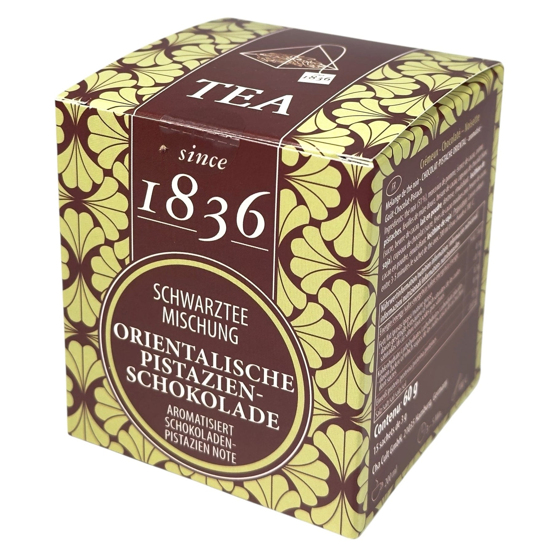 Ein Schwarztee, der cremige Schokolade und feine Pistazien in sich vereint – nussig, süßlich und gleichzeitig elegant. Dank der Pyramiden-Teebeutel bleibt die Qualität erhalten, und jeder Schluck wird zum besonderen Genussmoment.