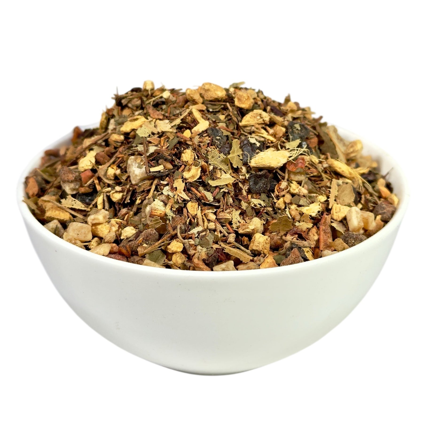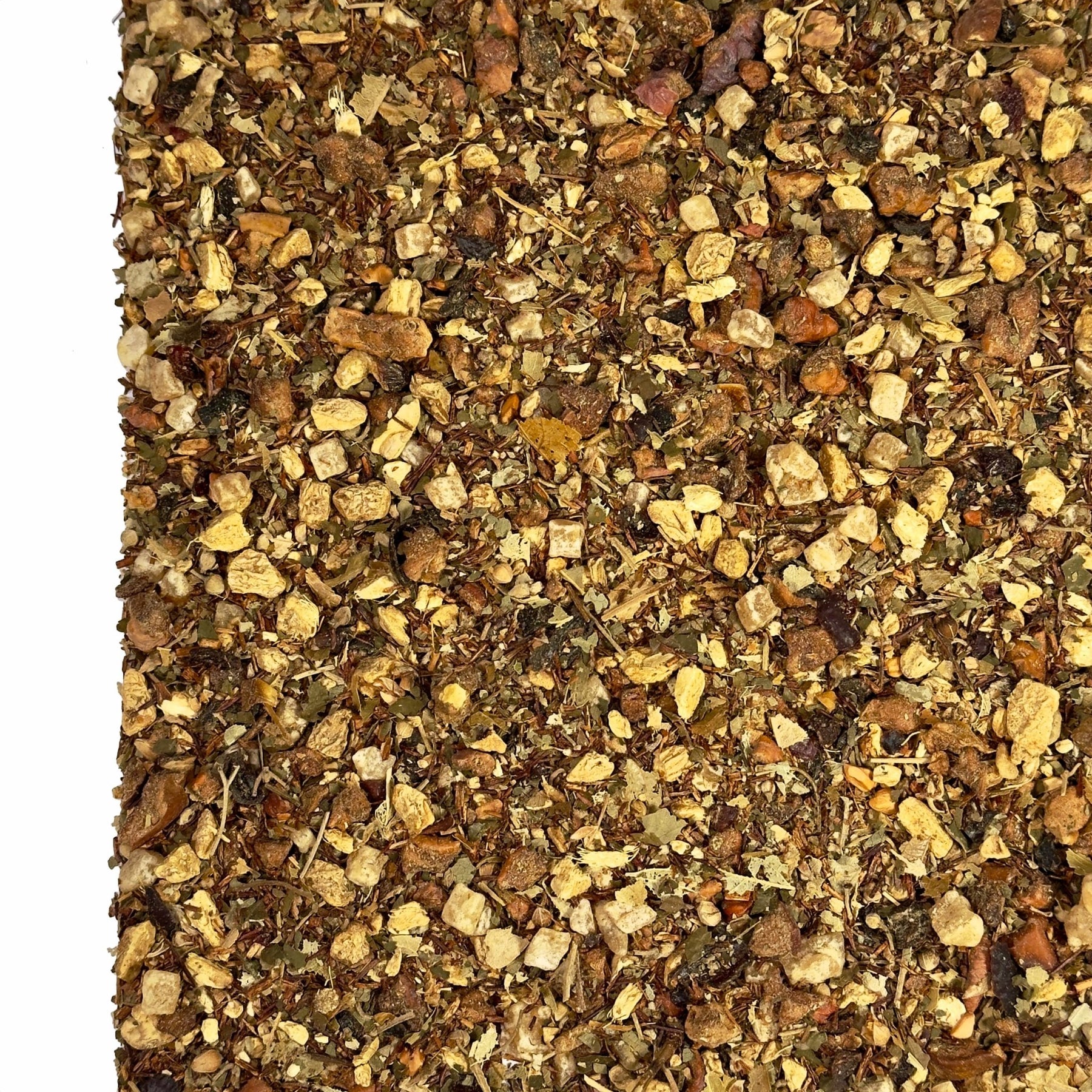 Ingwer verleiht der Teesorte eine unverwechselbare, würzige Schärfe, die für ein intensives und belebendes Geschmackserlebnis sorgt. Seine aromatischen Noten harmonieren perfekt mit fruchtigen und kräuterigen Zutaten und schaffen so ein komplexes und ausgewogenes Aromaprofil. Durch seine natürliche Wärme und Tiefe wird Ingwer in Teemischungen oft verwendet, um ein wohliges und zugleich erfrischendes Geschmackserlebnis zu erzeugen.