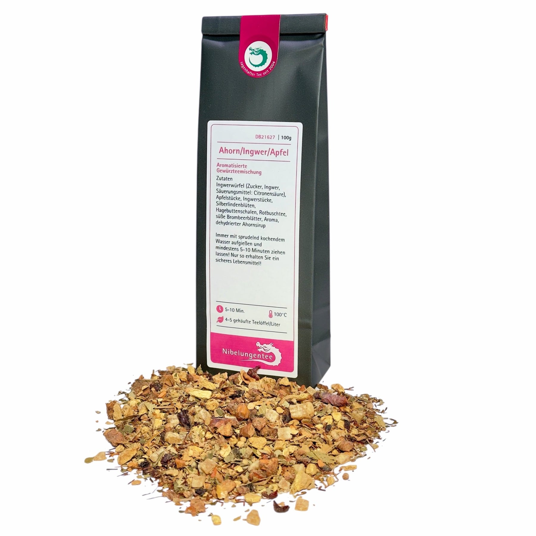 Der dehydrierte Ahornsirup krönt die Mischung und macht diese zu etwas Besonderen. Die fruchtigen, herb-süßen und leicht würzigen Noten vereinen sich wunderbar mit dem Geschmack der aufgebrühten Kräuter, Gewürze und Früchte.