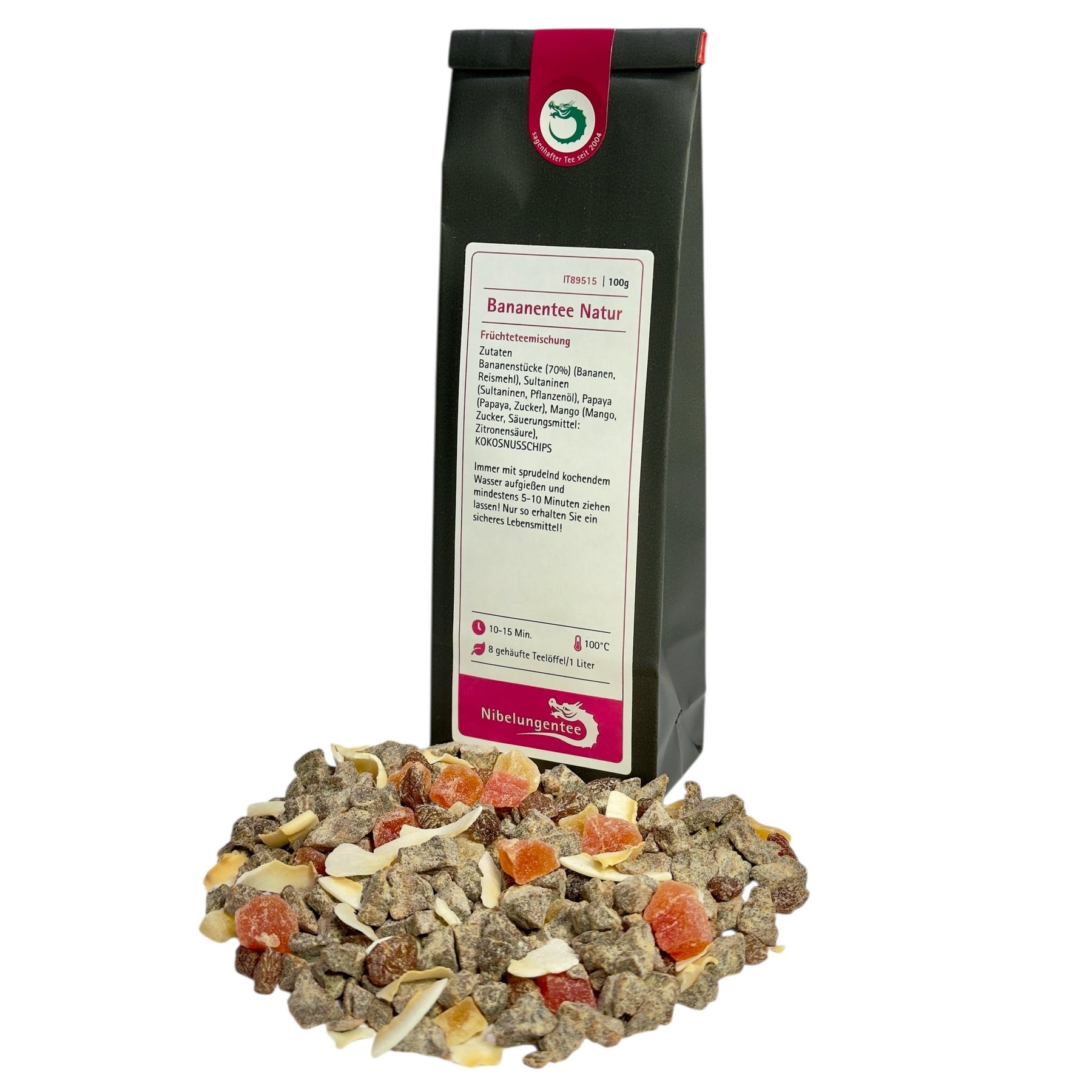 Unser Bananentee Natur ist das süße Geheimnis sinnlicher Momente. Die helle Farbe des Tees täuscht über sein Temperament hinweg: Hier geht das berauschende Aroma tropischer Früchte die Verbindung mit einem Heißgetränk ein. Und das, was dabei herauskommt ist mehr als Tee, es ist ein fruchtig-beschwingter Trinkgenuss.