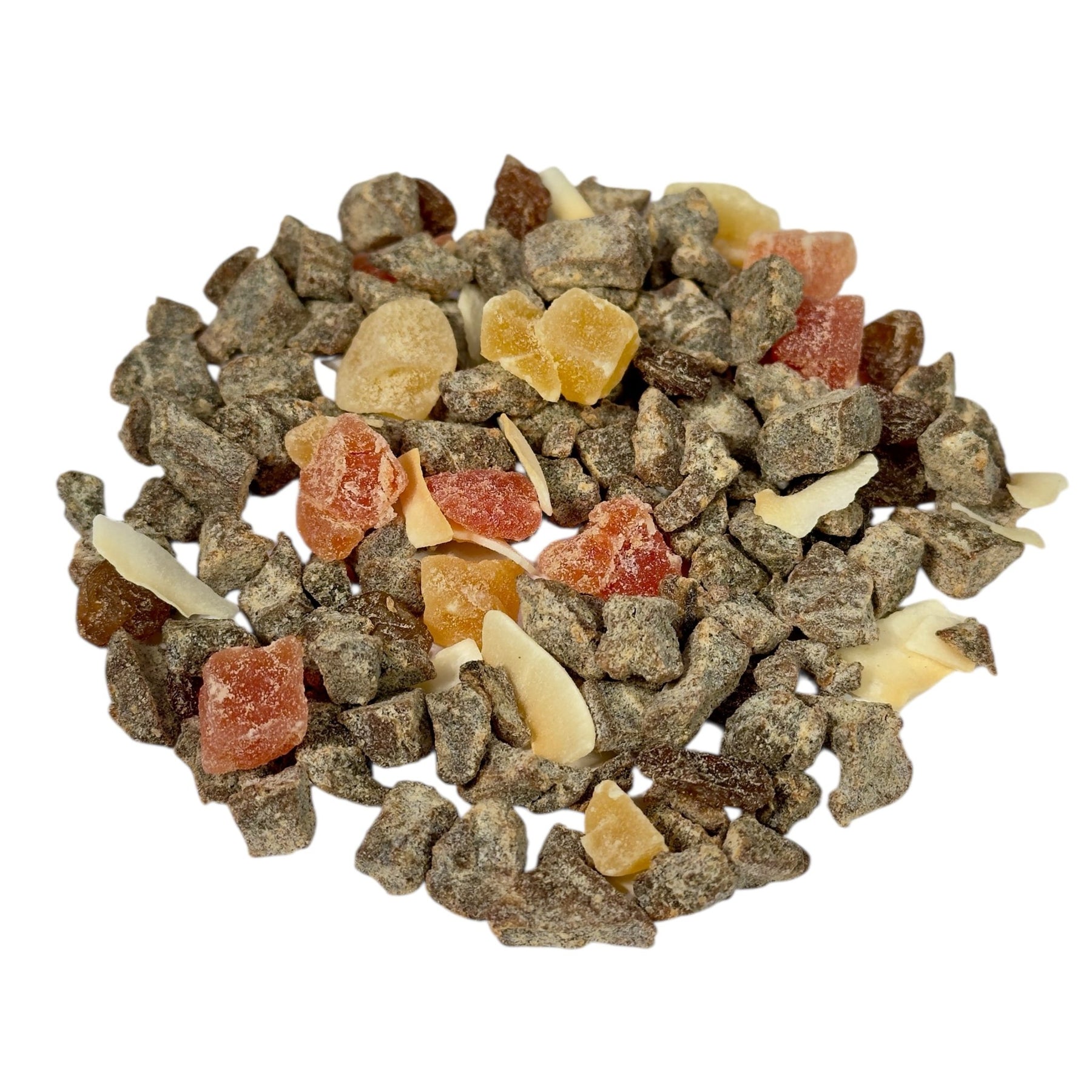Sultaninen bringen eine natürliche, fruchtige Süße in die Teesorte und verleihen dem Aufguss eine weiche, leicht malzige Note. Ihr intensives Aroma harmoniert besonders gut mit warmen Gewürzen und fruchtigen Komponenten, wodurch der Tee eine angenehm runde und ausgewogene Geschmacksbasis erhält.