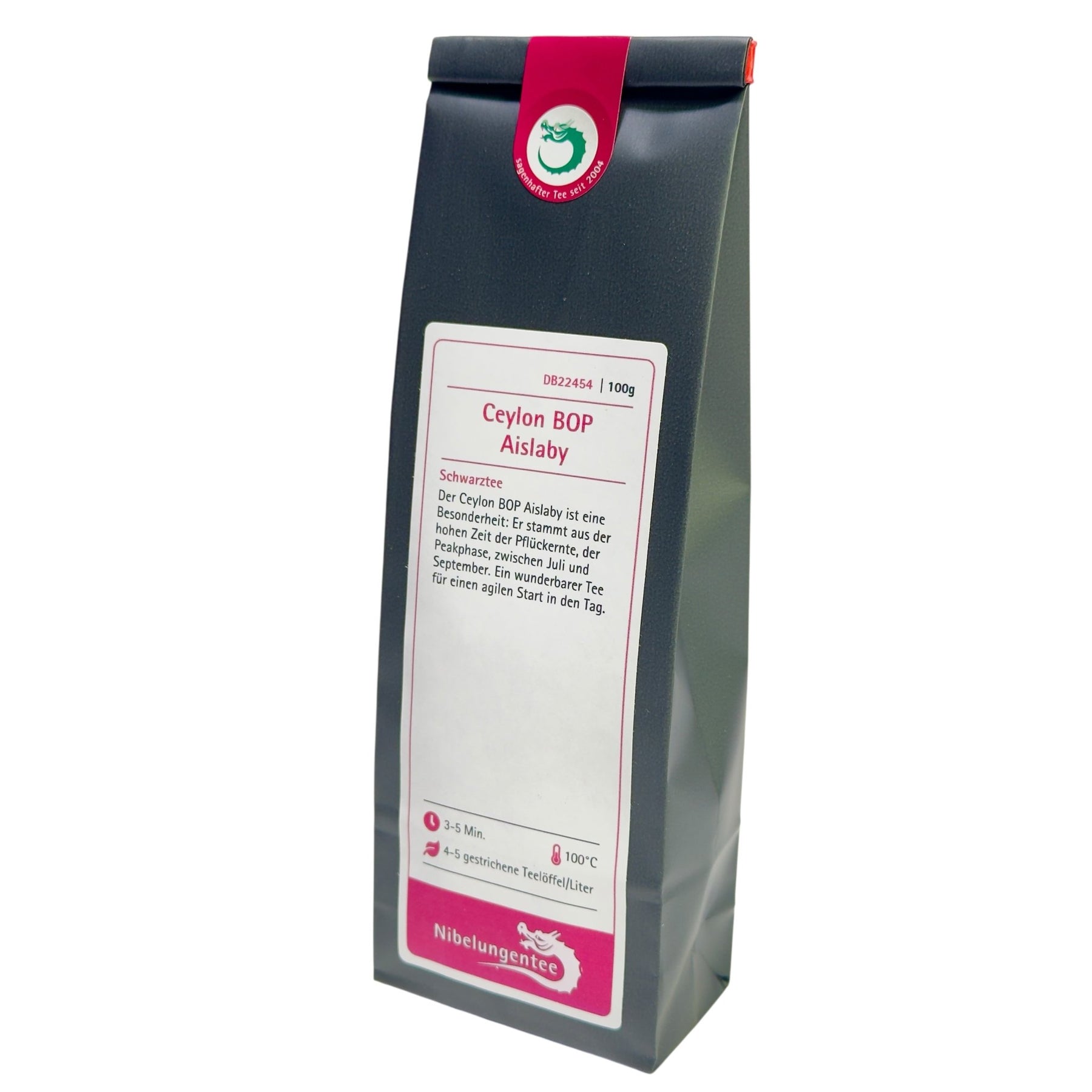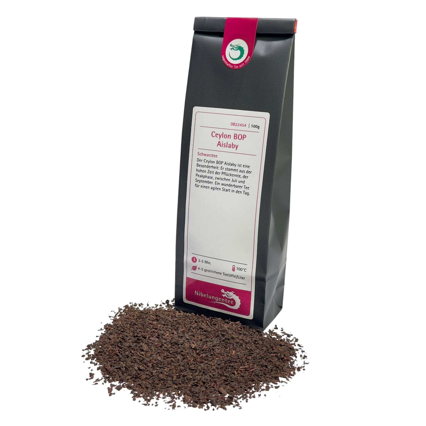 Ceylon (seit 1972 Sri Lanka) ist eines der weltweit bedeutendsten Teeländer, vor allem für Schwarztee. Die Plantage Aislaby liegt in der Provinz Uva im Südosten des Landes. Der BOP (Broken Orange Pekoe) hat eine dunkle, leicht rötliche Farbe, die Tasse scheint wie dunkles Kupfer - schon optisch ein echtes Highlight.