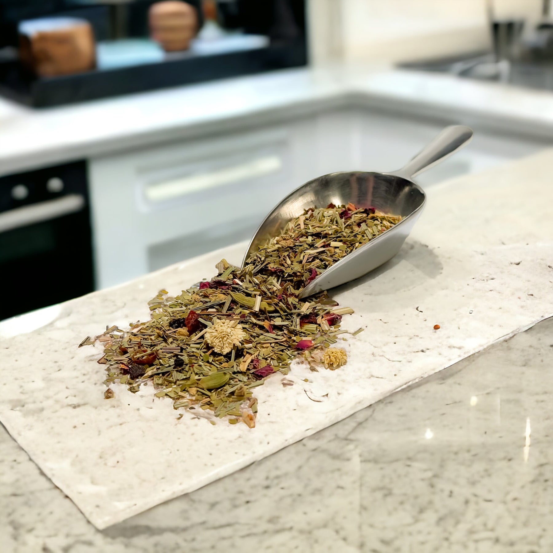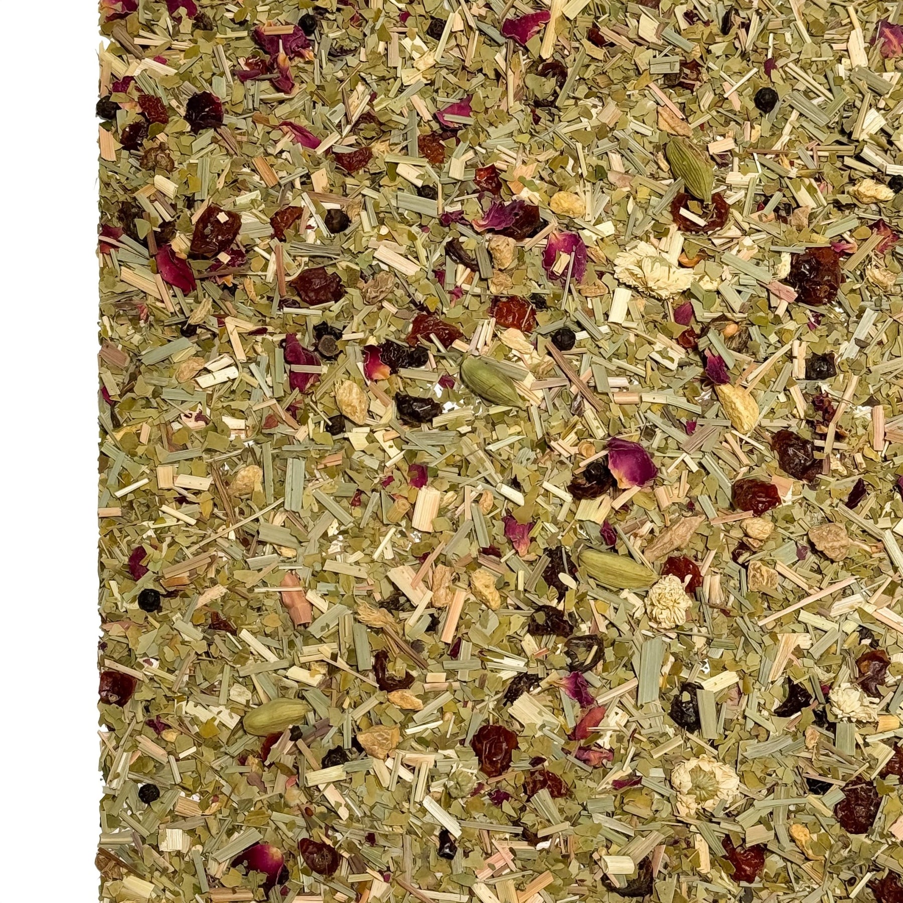 Ingwer verleiht der Teesorte eine unverwechselbare, würzige Schärfe, die für ein intensives und belebendes Geschmackserlebnis sorgt. Seine aromatischen Noten harmonieren perfekt mit fruchtigen und kräuterigen Zutaten und schaffen so ein komplexes und ausgewogenes Aromaprofil. Durch seine natürliche Wärme und Tiefe wird Ingwer in Teemischungen oft verwendet, um ein wohliges und zugleich erfrischendes Geschmackserlebnis zu erzeugen.