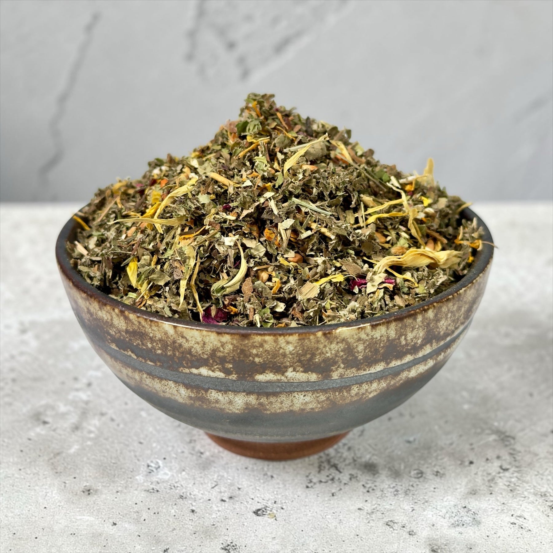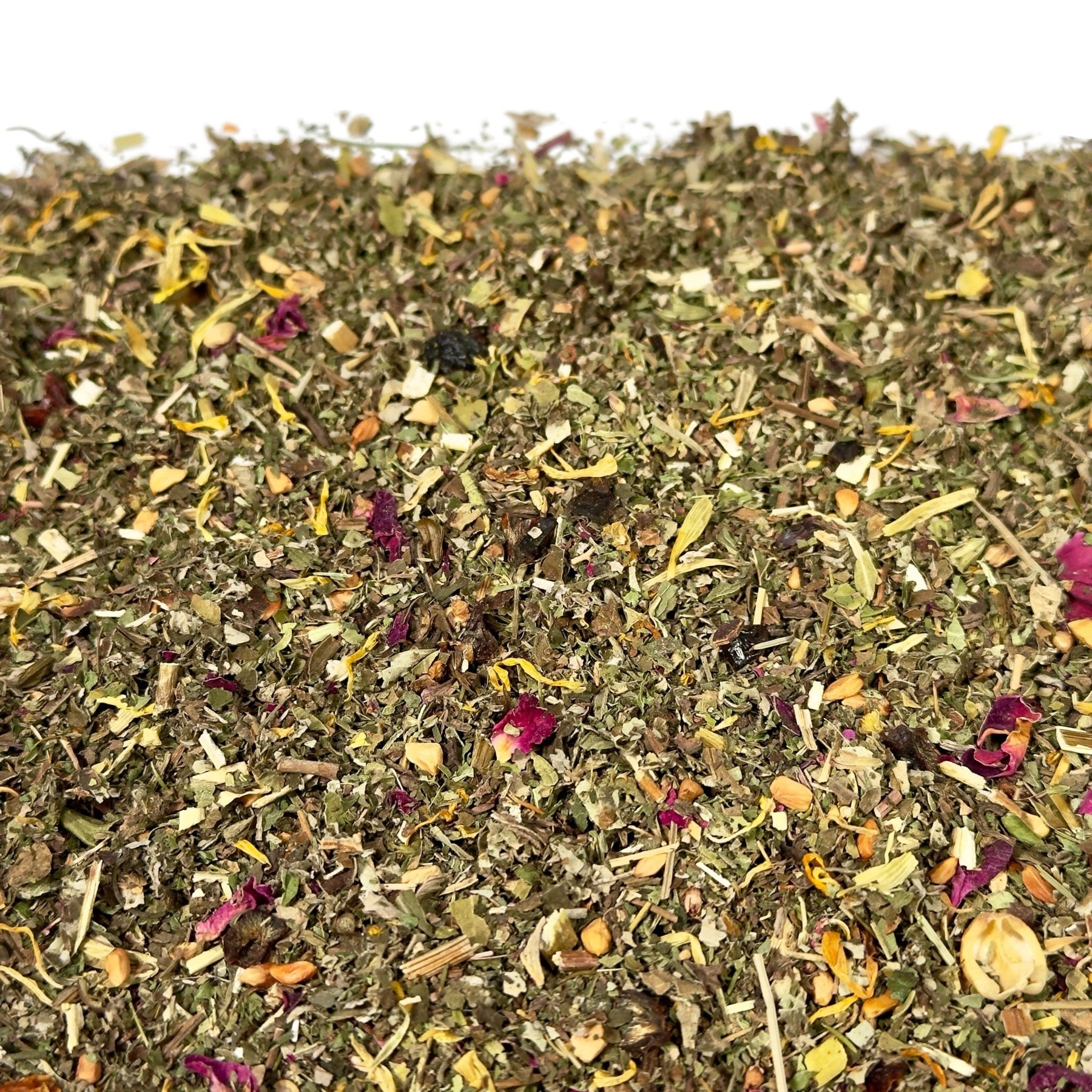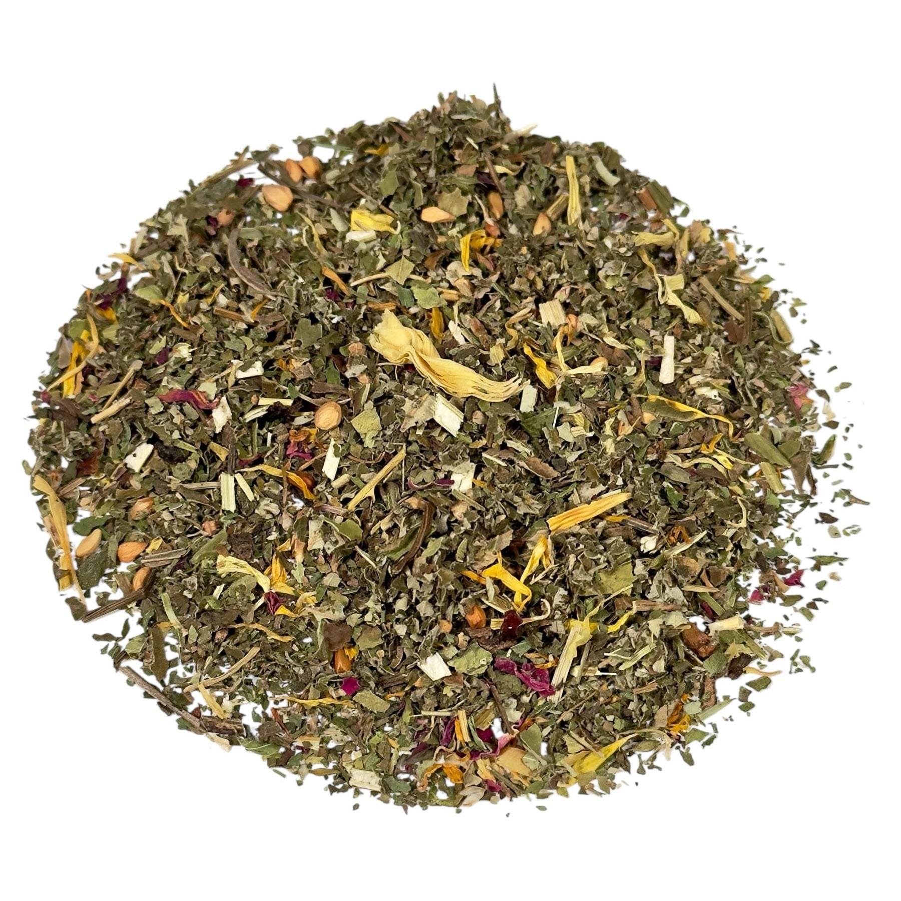Im Geschmack zeigt sich eine ausgewogene Balance aus sanften, leicht herben Kräutern und einer feinen Frische. Einige Bestandteile bringen eine milde, grüne Grundlage mit, während andere einen dezenten Hauch von Blütenaroma hinzufügen. Dadurch wirkt die Mischung weder schwer noch aufdringlich, sondern angenehm rund und vielschichtig.