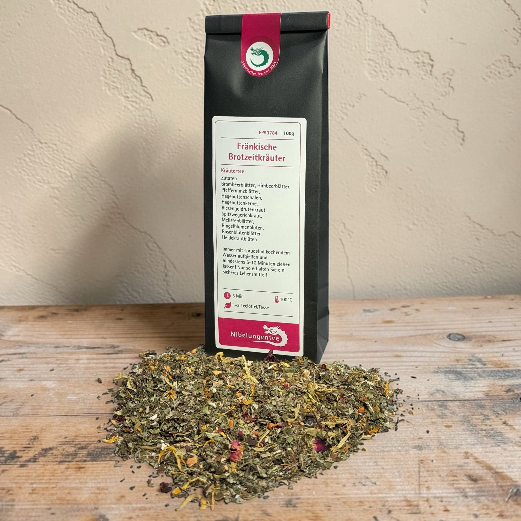 Manchmal sind es die einfachen Dinge, die besonders gut tun: ein rustikaler Tisch, eine herzhafte Brotzeit und dazu eine Tasse würziger Kräutertee. Genau in dieser Atmosphäre fühlt sich die Mischung „Fränkische Brotzeitkräuter“ zuhause. Sie bringt die bodenständige, ländliche Seite der fränkischen Genusskultur in die Teetasse und erinnert geschmacklich an Wiesen, Kräutergärten und sonnige Tage auf dem Land.