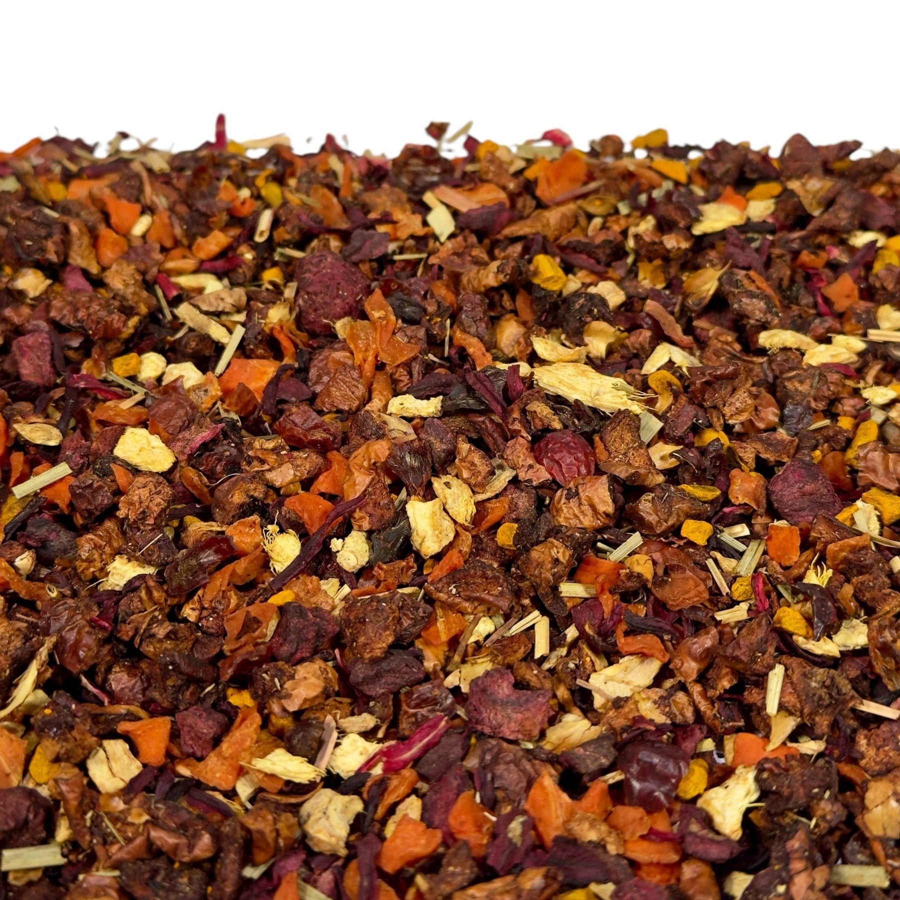 Karottenstücke geben dem Tee eine natürliche Süße und eine erdige Note, die wunderbar mit fruchtigen oder würzigen Zutaten harmoniert. Durch ihre milde Geschmacksnuance schaffen sie eine ausgewogene Mischung, die überraschend vielseitig ist. Ihre leichte, natürliche Textur sorgt zudem dafür, dass sie beim Aufbrühen ihre Aromen sanft entfalten, ohne dominant zu wirken.