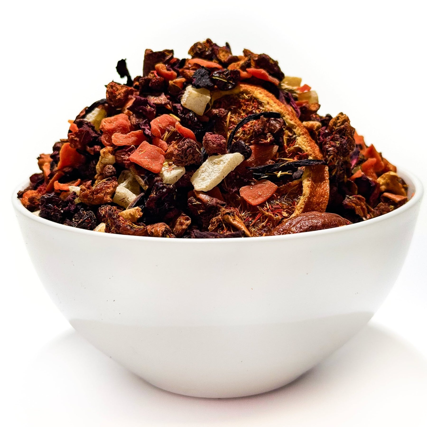 • Karotten- & Rote Beetestücke – Verleihen dem Tee eine sanfte, leicht erdige Note.