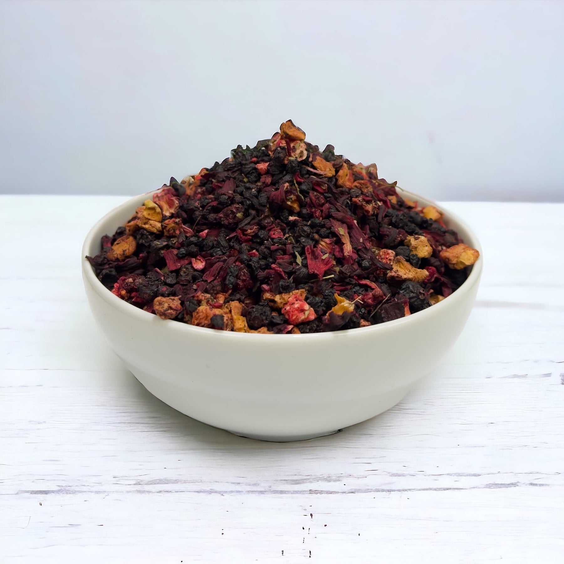 Sie verleihen dem Tee eine tiefrote Farbe und einen intensiven, leicht herben Geschmack. Sie bringen eine angenehme Tiefe in die Aromen und harmonieren besonders gut mit anderen fruchtigen oder würzigen Zutaten. Der unverwechselbare Geschmack der Beeren macht den Tee zu einer besonderen und vielseitigen Genussmöglichkeit.