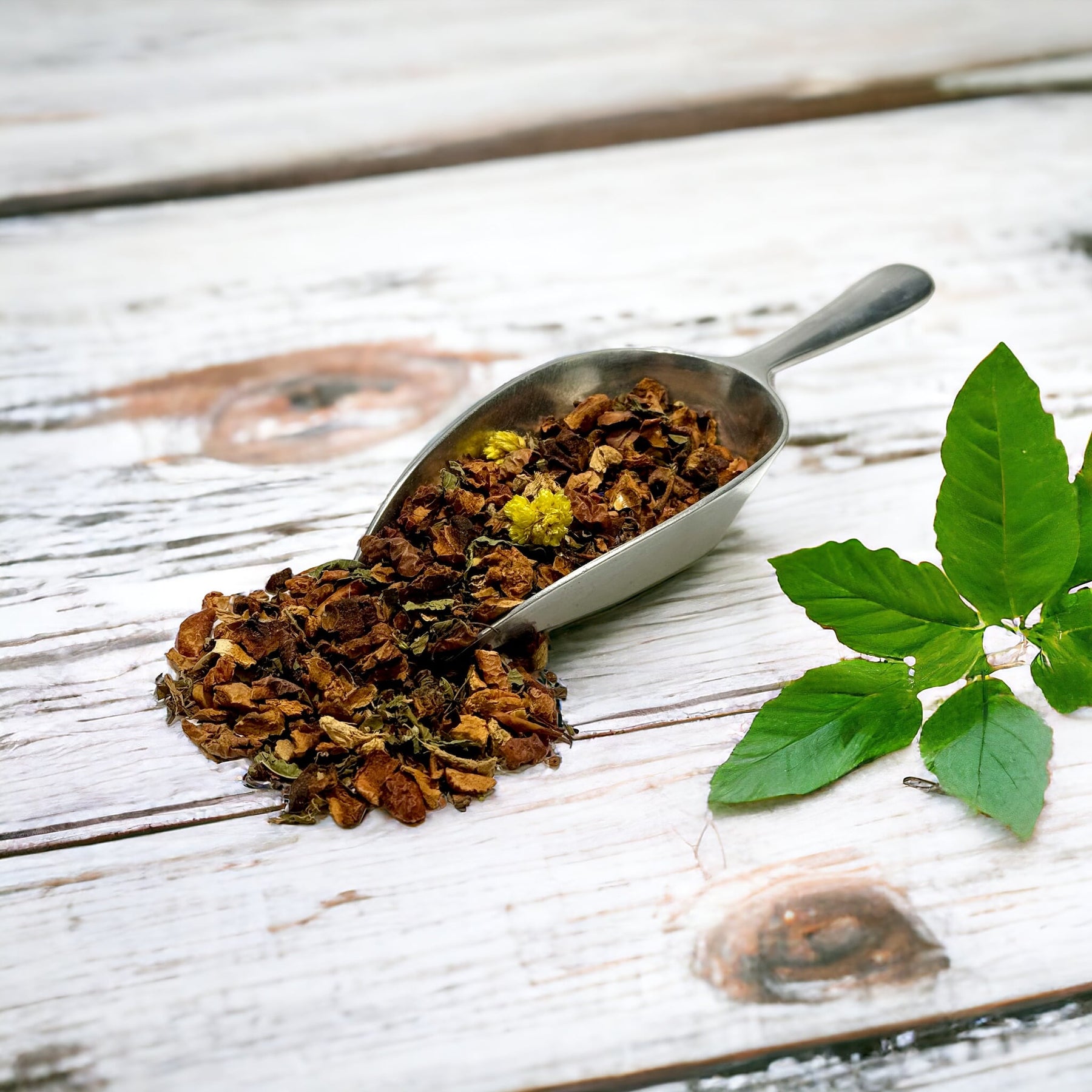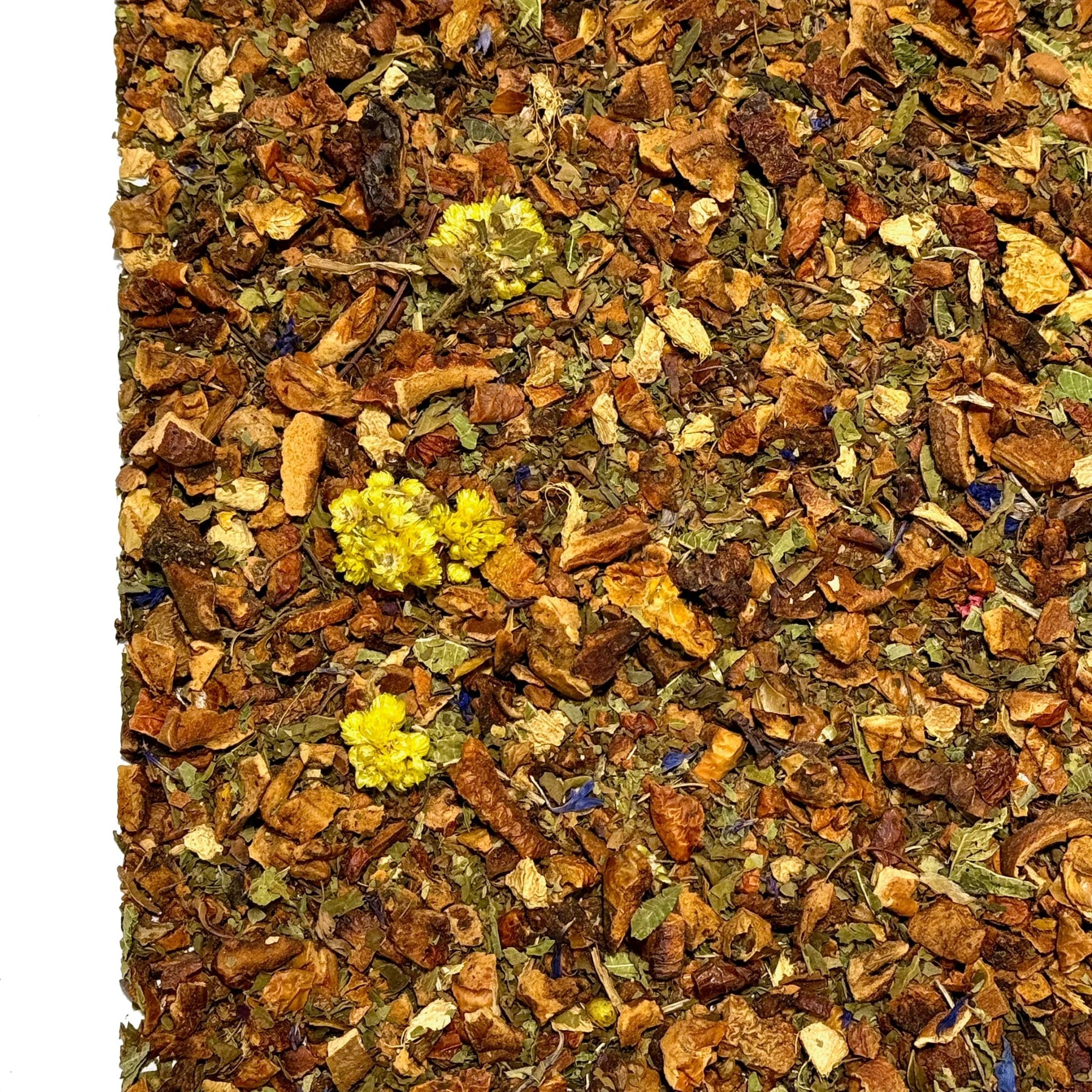 Zutaten: | Apfelstücke*, Tulsikraut* (10%), Zimtstücke*, Ingwer*, Basilikum*, Zitronenecken* (3%), natürliches Zitronen-Aroma, Zitronenverbene*, natürliches Vanille-Aroma, natürliches Orangen-Aroma, Katzenpfötchenblüten*, Kornblumenblüten*. * = aus kontrolliert biologischem Anbau |
