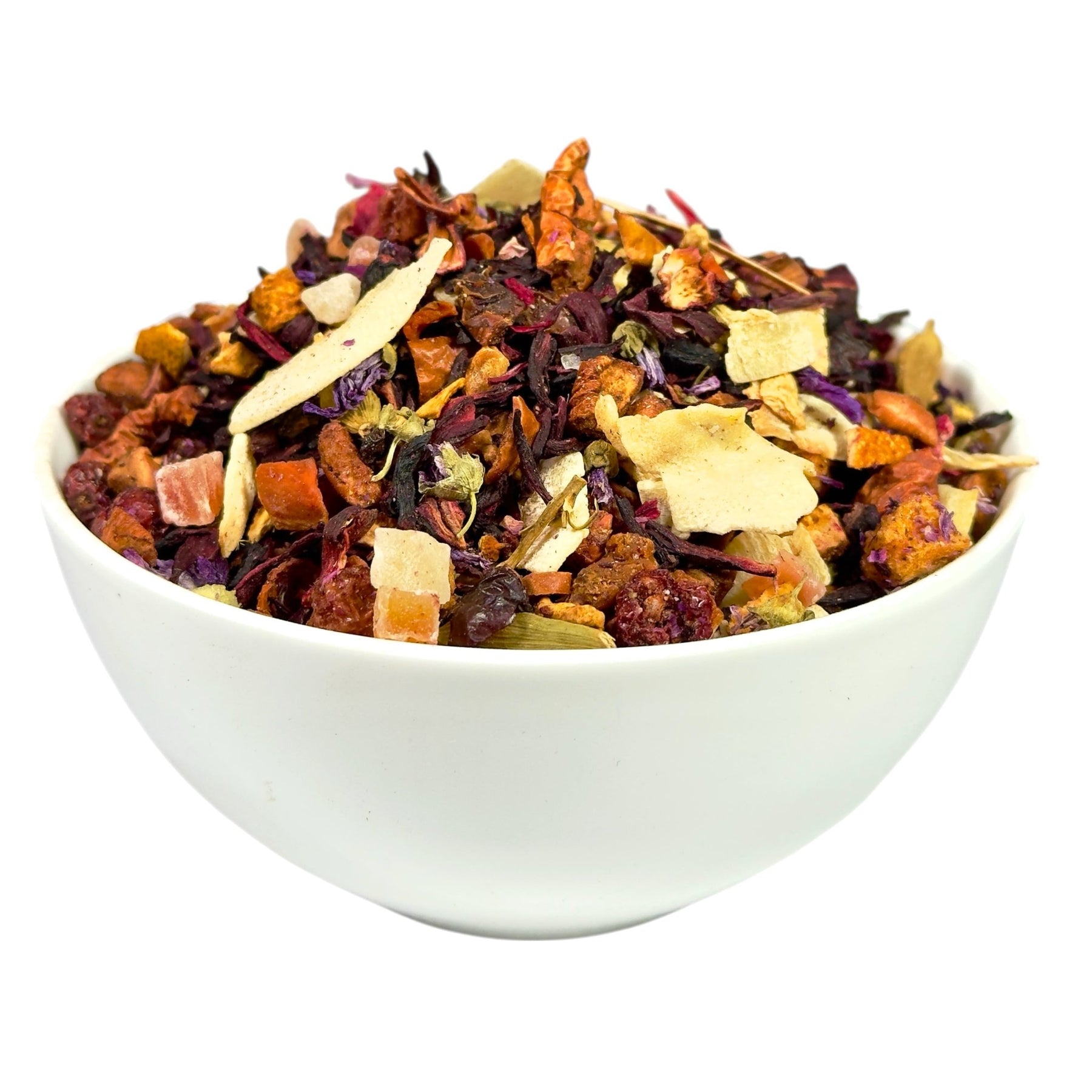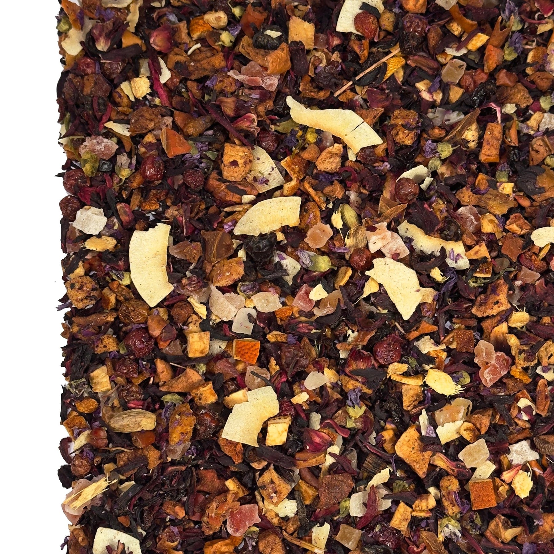 Diese Mischung vereint die besten Seiten der kalten Jahreszeit: fruchtige Süße, feine Würze und eine wohltuende Wärme. Ein Tee, der den Winter ein kleines bisschen sonniger macht und mit seinem ausgewogenen Aroma für genussvolle Momente sorgt.