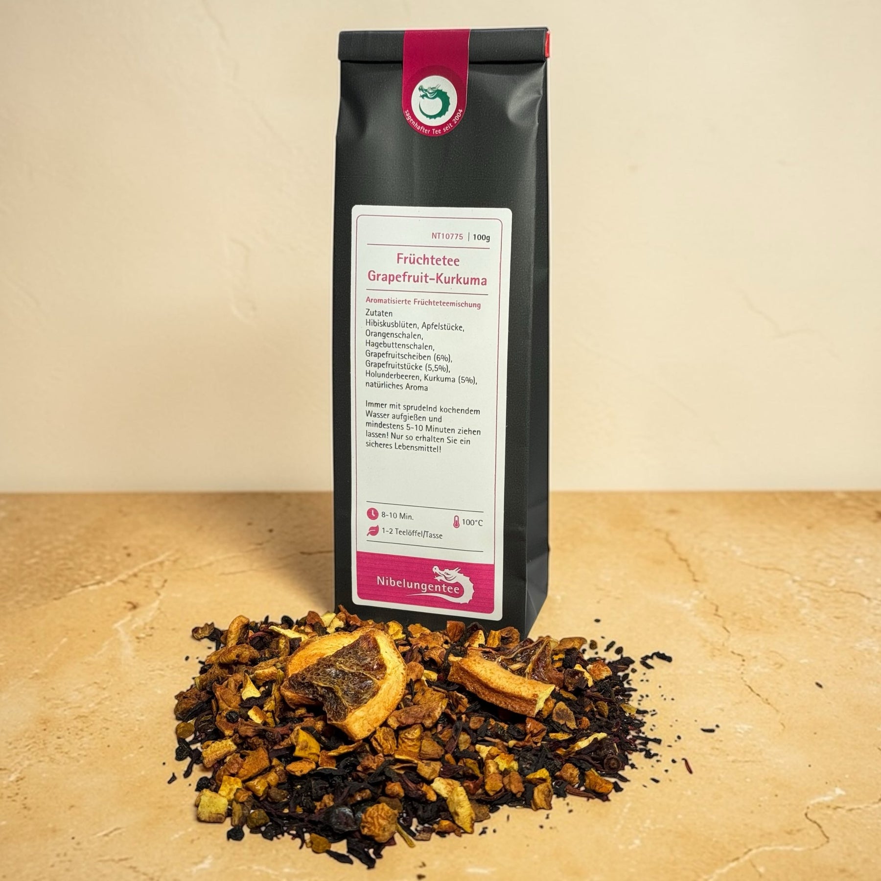 Die Kombination aus Grapefruit und Kurkuma ist mutig, aber keineswegs aufdringlich. Sie spricht Menschen an, die fruchtige Tees mögen und gleichzeitig Lust auf eine kleine geschmackliche Entdeckungsreise haben. Der Eindruck ist frisch, leicht herb und zugleich weich eingebettet in eine würzige Tiefe.