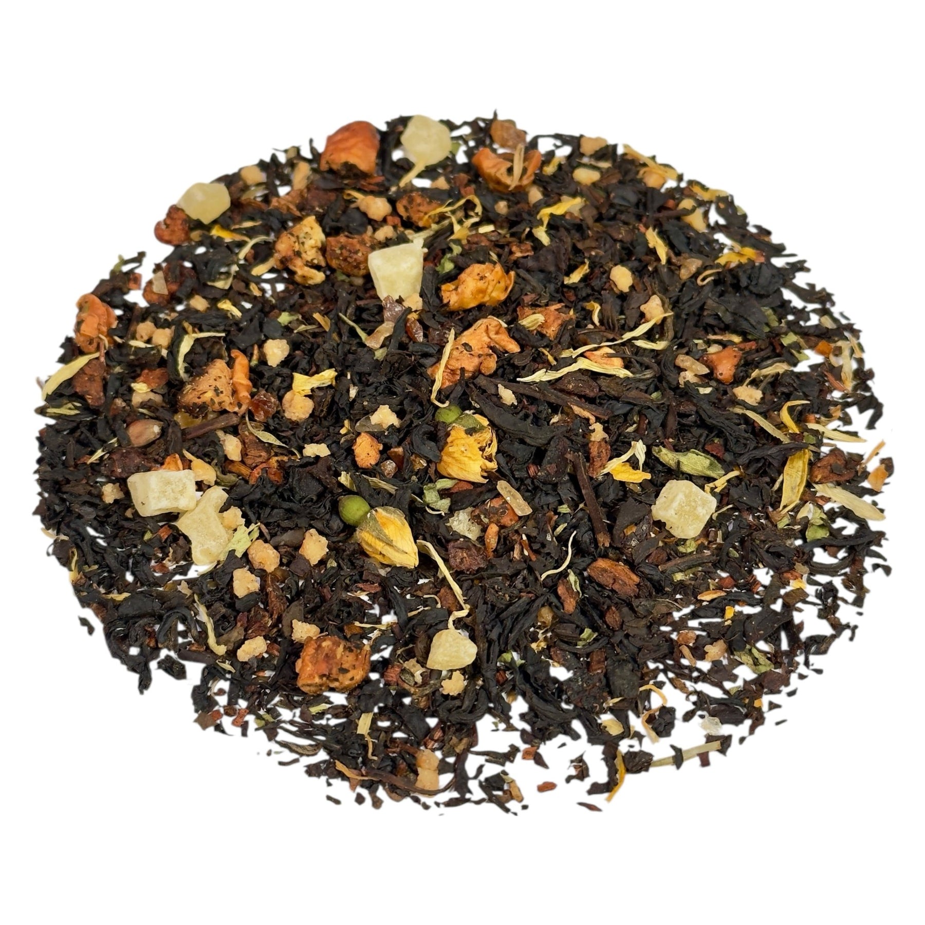 | Art: | Aromatisierter Schwarztee mit Fruchtstücken und Gewürzen |