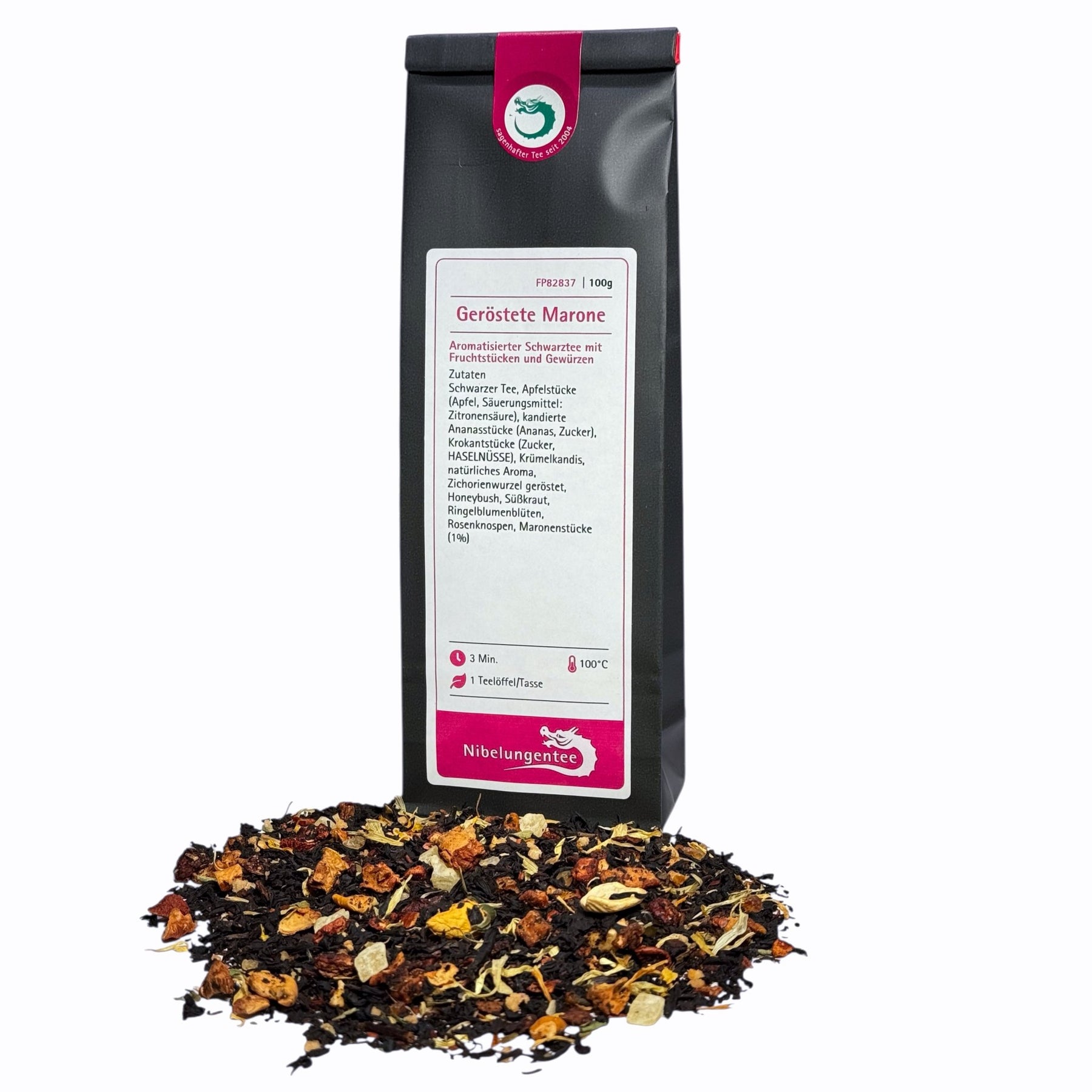 | Eigenschaften: | Schwarztee Aromatisiert Loser Tee natürliches Aroma Weihnachtlich Marone |