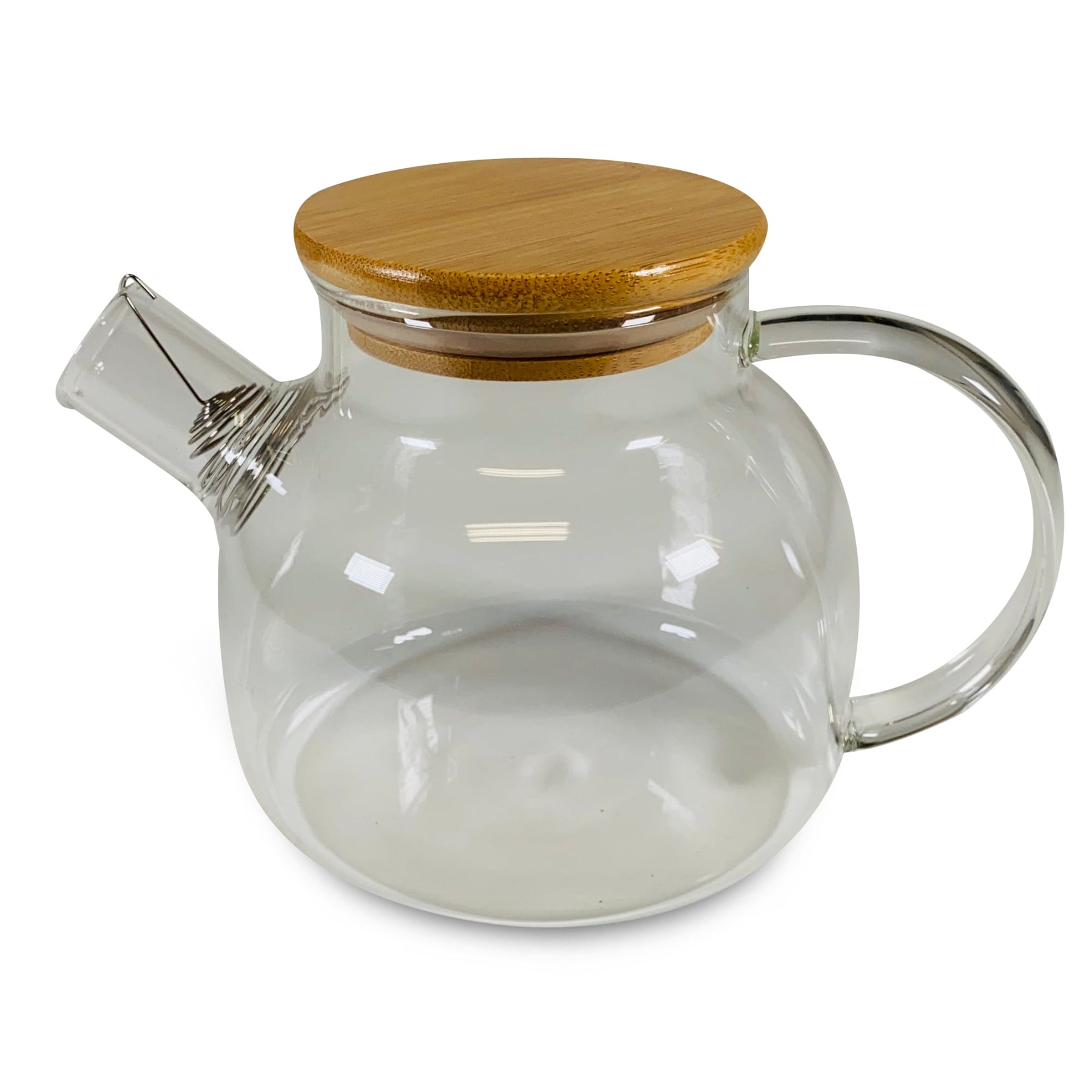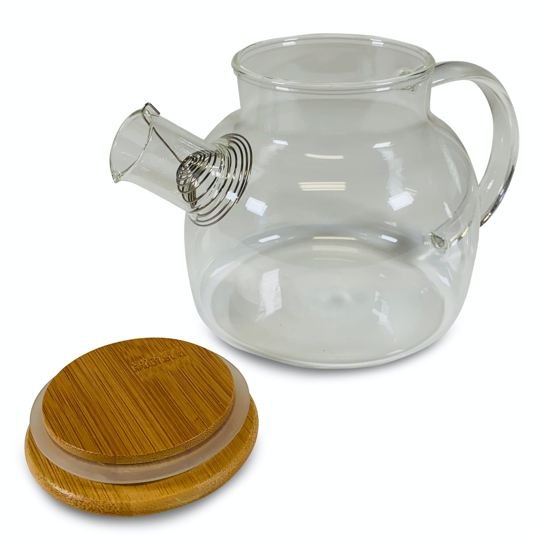 Hitzebeständiges Borosilikatglas. Mit spiralförmigem Edelstahlsieb und Bambusdeckel.