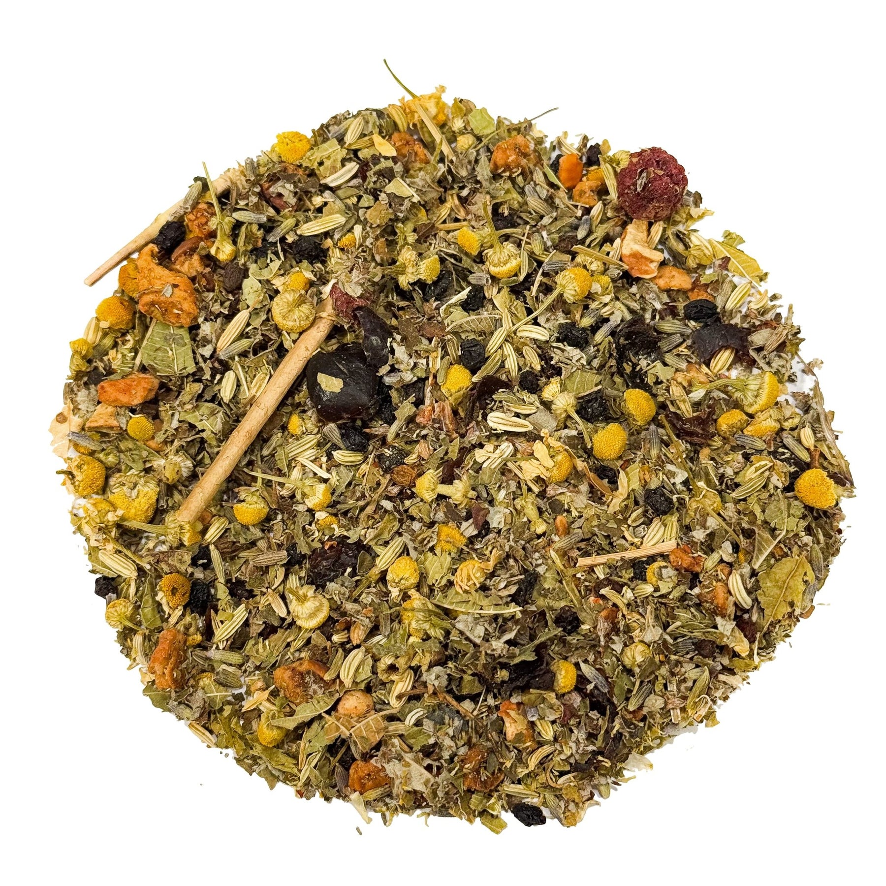 Der Fenchel verleiht der Teesorte durch seinen mild-süßlichen und leicht würzigen Geschmack eine besondere Note, die an Anis erinnert und gleichzeitig sanft und erfrischend wirkt. Sein aromatisches Profil harmoniert hervorragend mit anderen Kräutern und Gewürzen, wodurch komplexe und ausgewogene Geschmackskompositionen entstehen.
