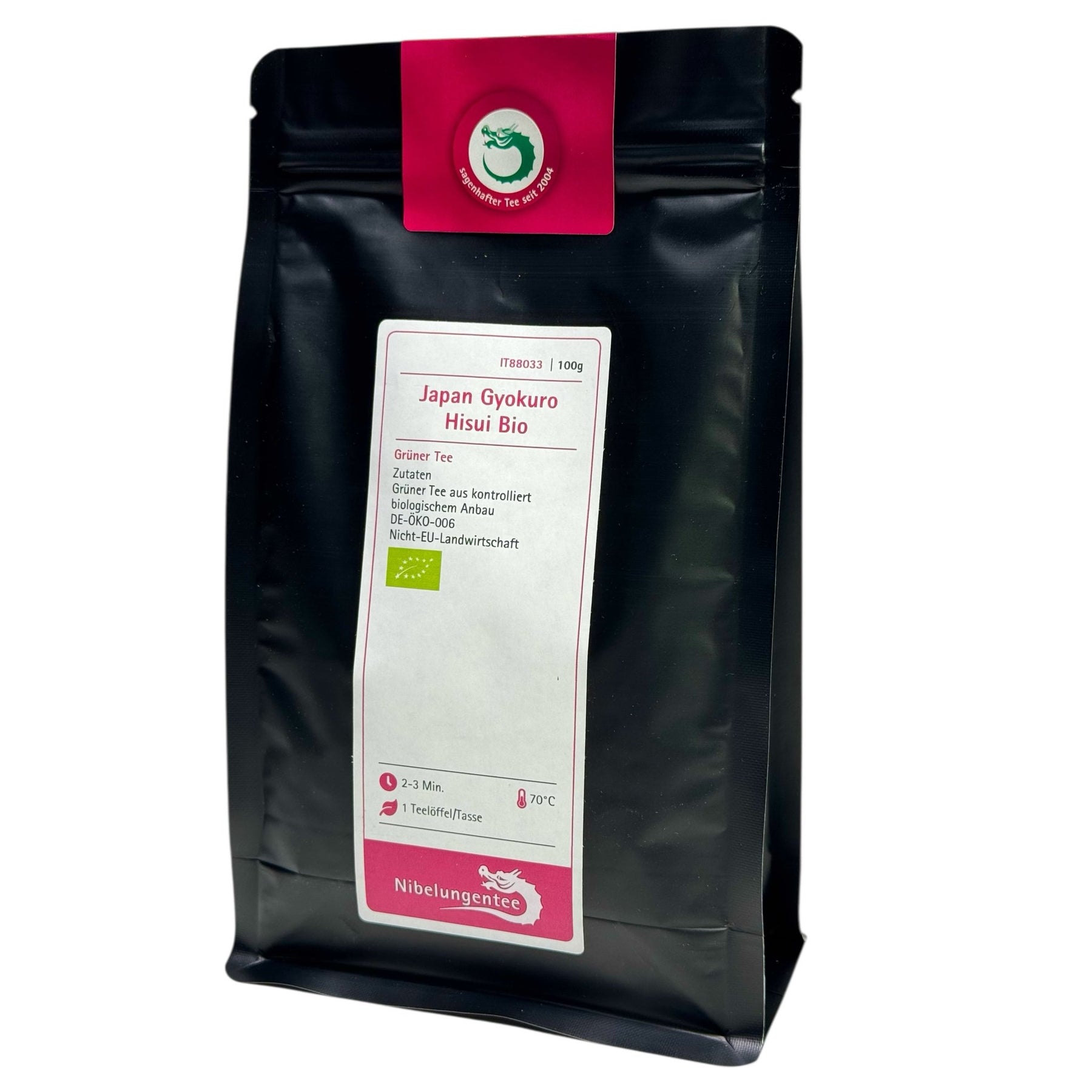 Der Gyokuro Hisui wird in den bekannten Anbauregionen Japans kultiviert, wo er unter idealen Bedingungen wächst. Der Tee wird in einem speziellen Verfahren aus schattierten Teeblättern gewonnen. Diese Methode steigert die Aromen und sorgt dafür, dass die Blätter besonders viel Chlorophyll und Aminosäuren enthalten. Dies trägt zu der einzigartigen Süße und dem reichhaltigen Geschmack des Tees bei.