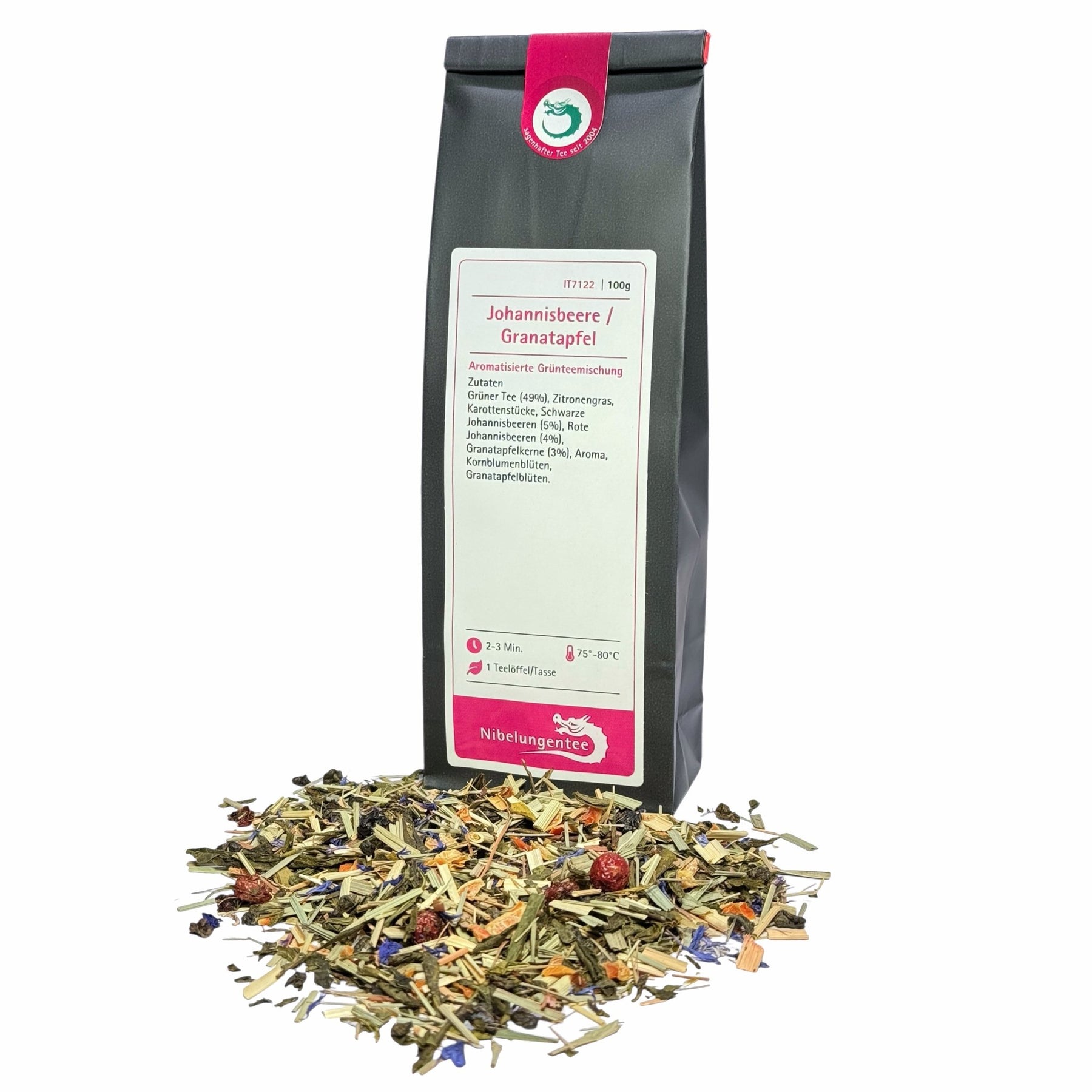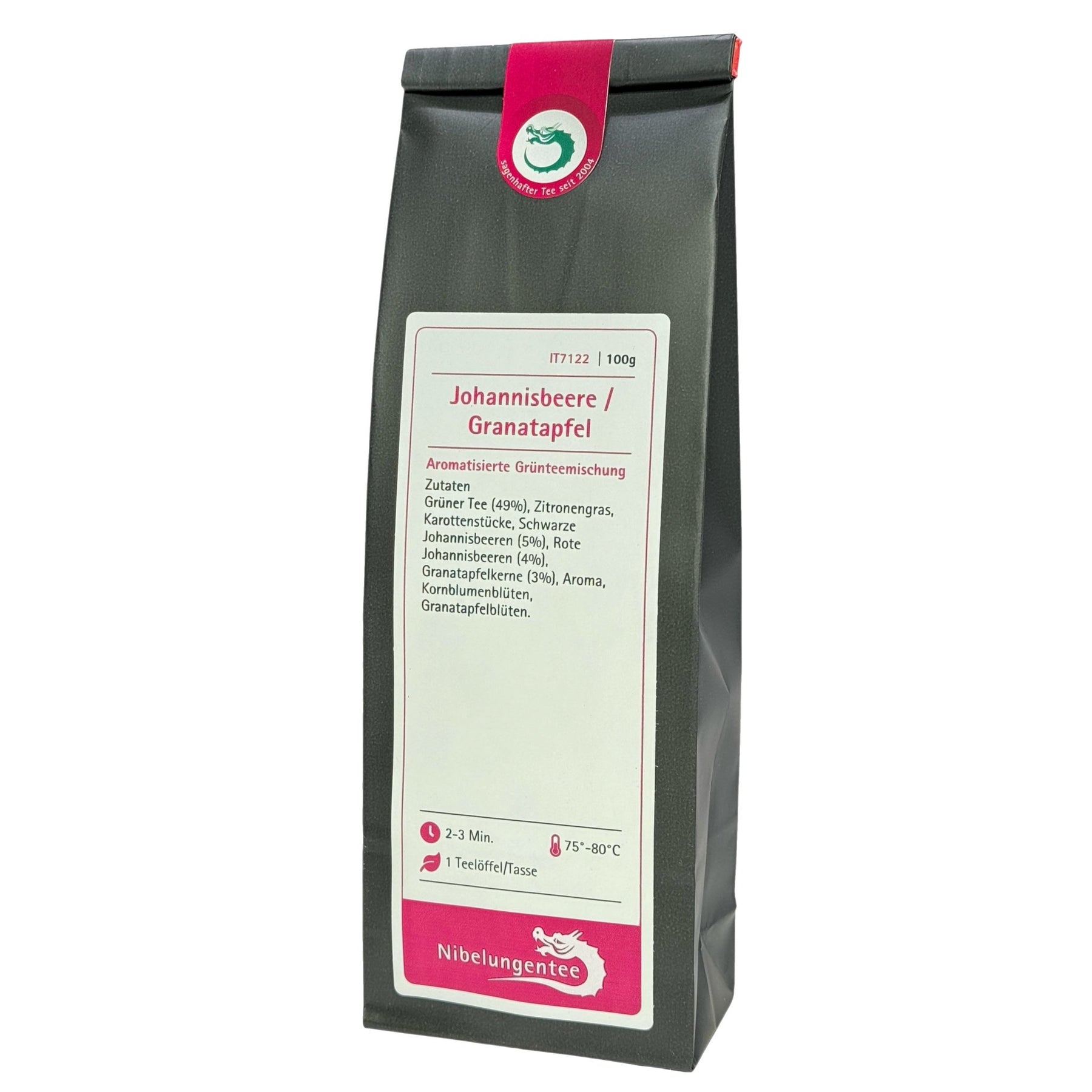 | Eigenschaften: | Grüner Tee Aromatisiert Loser Tee Fruchtig Granatapfel Johannisbeere |