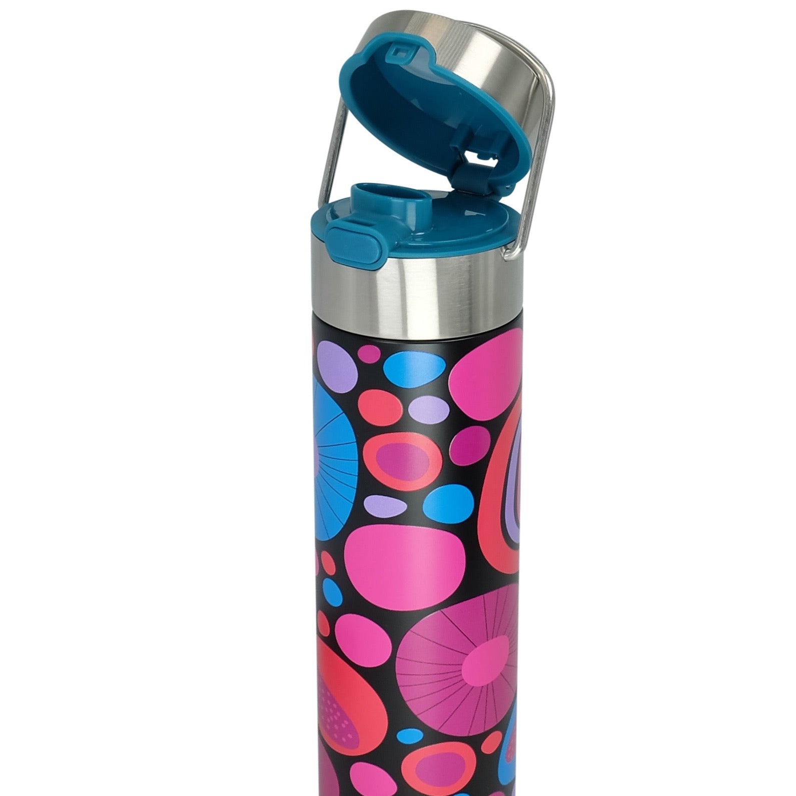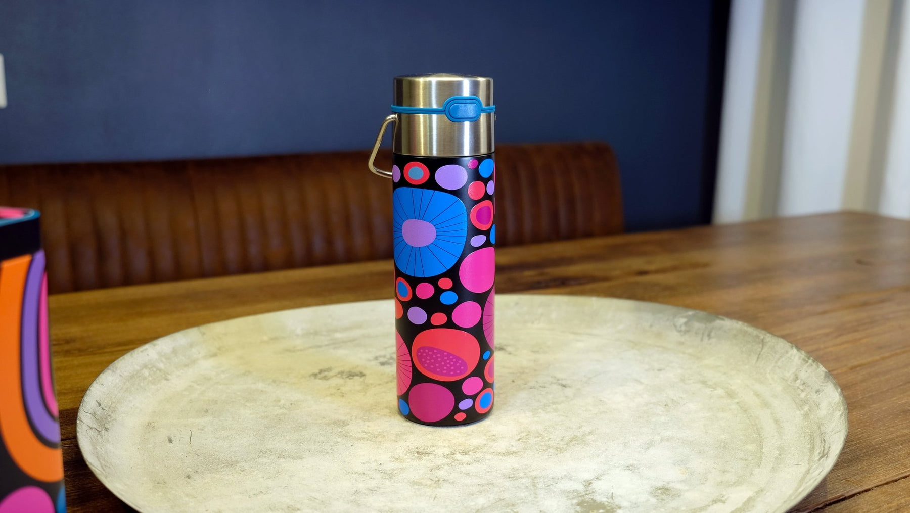 Im stylischen Design begleitet Sie die Leeza Cheerful unterwegs mit der doppelwandigen Edelstahl-Thermo-Trinkflasche.