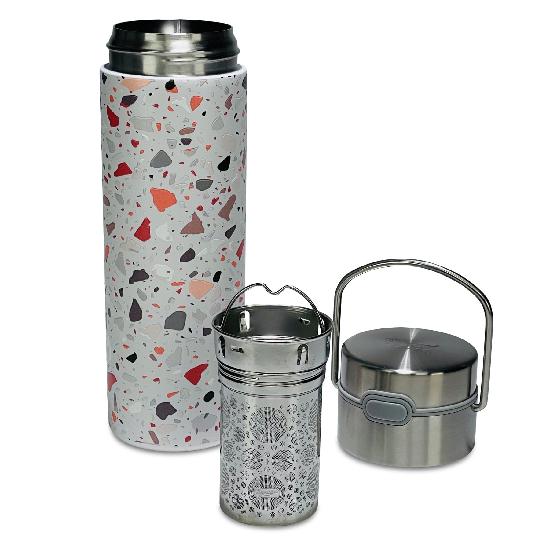 Die LEEZA Edelstahl-Trinkflasche Terrazzo ist der ideale Begleiter für Tee-Liebhaber mit hohem Anspruch.
