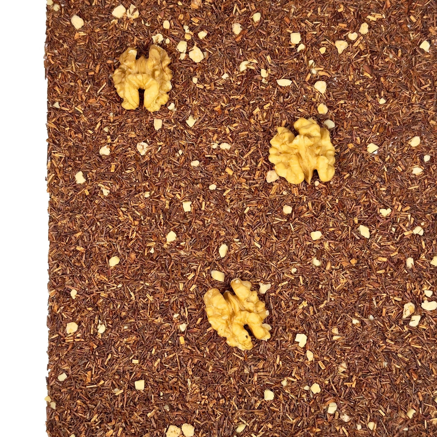 Zutaten: | Rotbuschtee, WALNUSSKERNE, Krokantstücke (Zucker, HASELNUSSKERNE, Invertzucker), MANDELSTÜCKE, Aroma |
