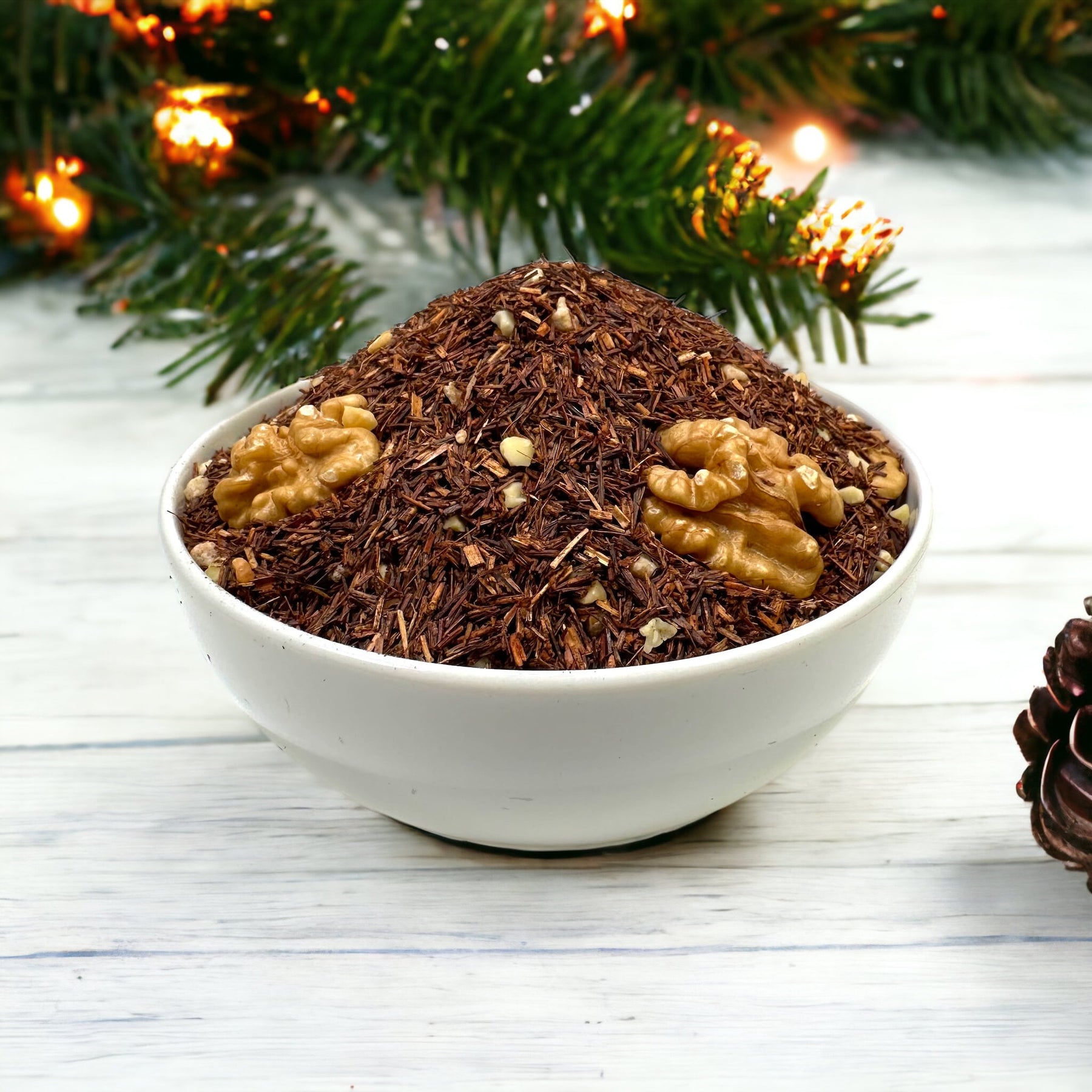 Wenn sanfter Rooibos-Tee auf die verlockende Kombination aus Ahornsirup und Walnuss trifft, entsteht ein Geschmackserlebnis, das einfach unwiderstehlich ist. Die milde, leicht erdige Note des Rooibos bildet die perfekte Basis für die süßlich-nussige Komposition. Schon beim ersten Schluck entfaltet sich das warme Aroma von Ahornsirup, das an gemütliche Herbsttage und duftendes Gebäck erinnert. Ergänzt durch die feine, leicht herbe Note der Walnuss, bekommt dieser Tee eine besondere Tiefe und Raffinesse.