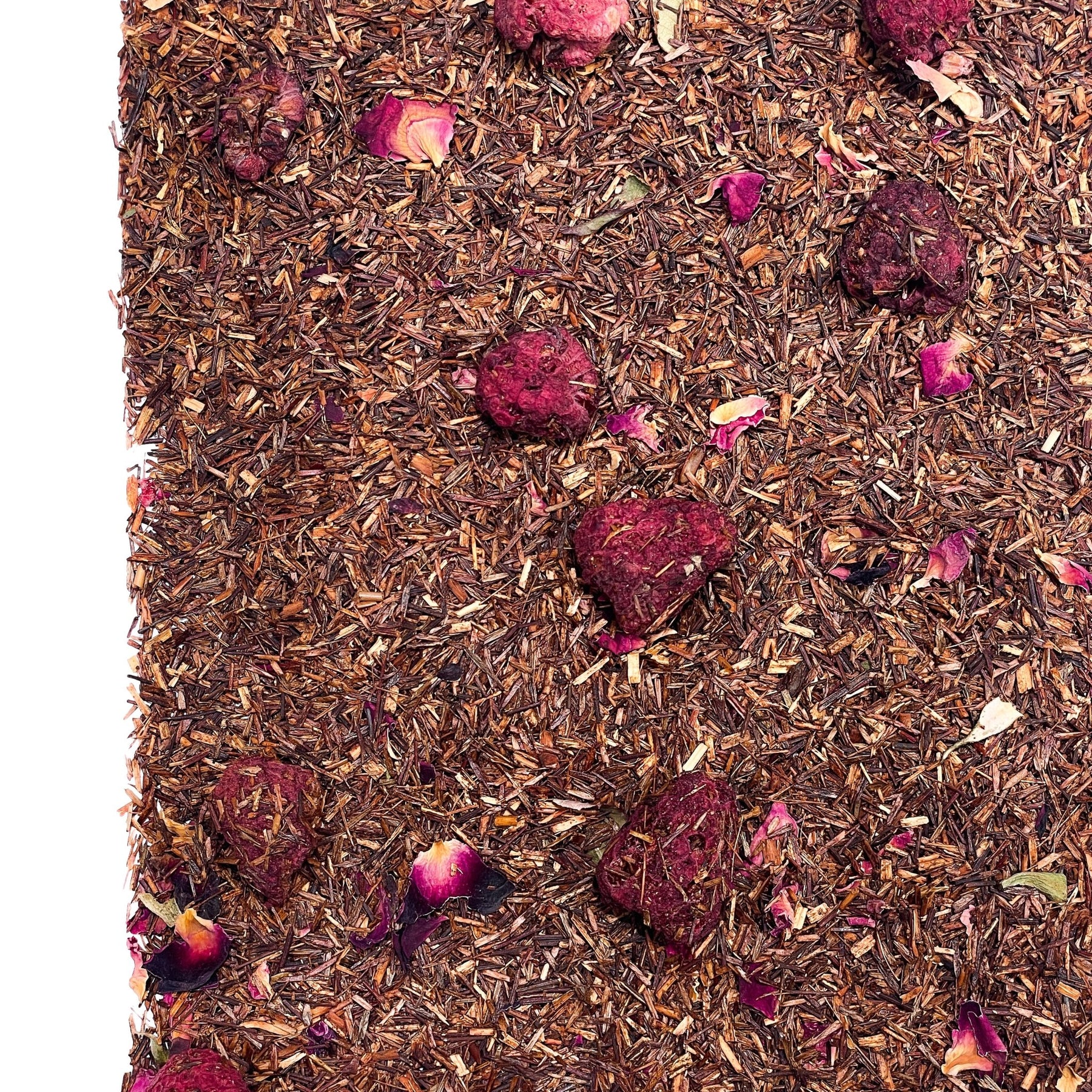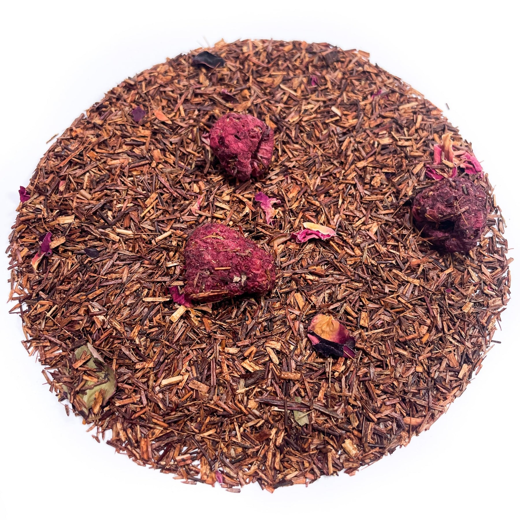 Zutaten: Rotbuschtee, Aroma, gefr.-getr. ganze Himbeeren, Rosenblüten, Vanillestücke