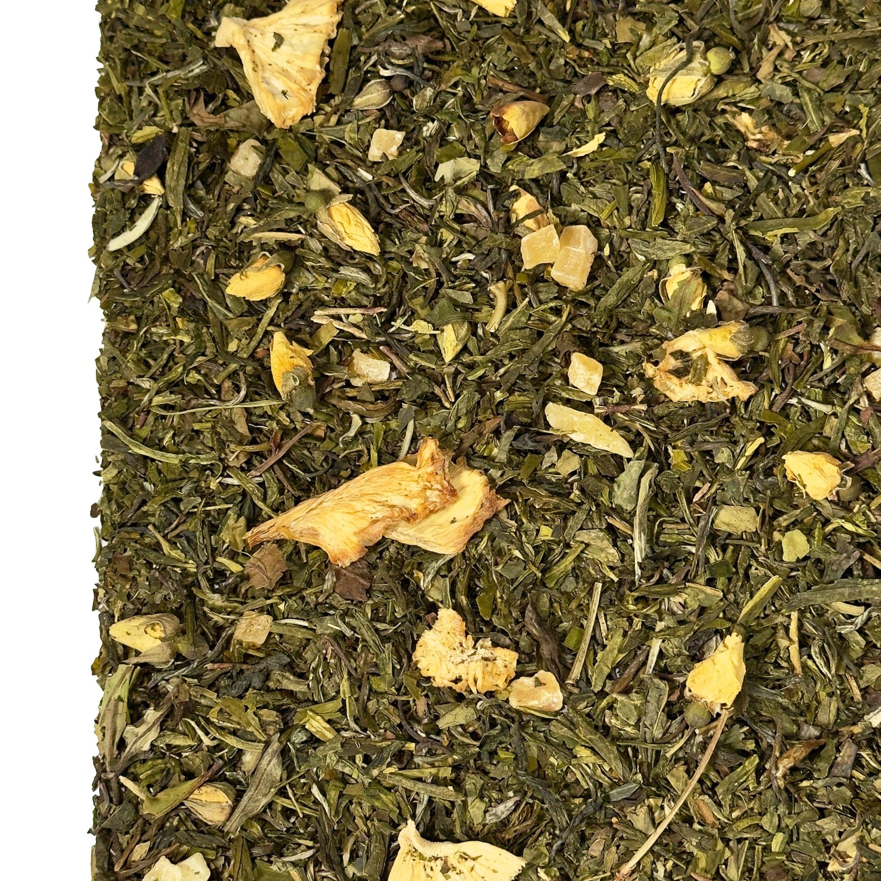 Fruchtige Elemente wie Ananas und Mango bringen eine sonnige, exotische Note ins Spiel. Sie erinnern an reife Früchte und warme Tage, ohne den Tee zu dominieren. Besonders die Mango – als echte Superfruit bekannt – verleiht der Mischung einen cremig-süßen Hauch, der zusammen mit einem zarten Anklang saftiger Birne für ein rundes und ausgewogenes Geschmackserlebnis sorgt.