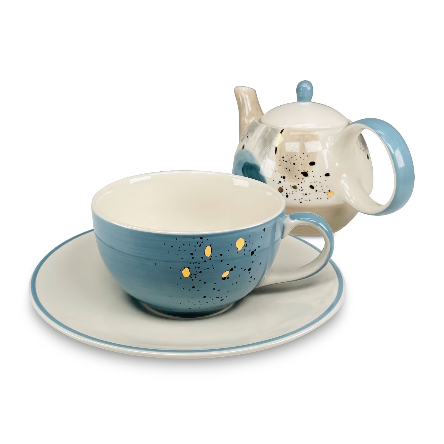 Handbemaltes Keramik Tea-for-One Set mit Goldauflage.