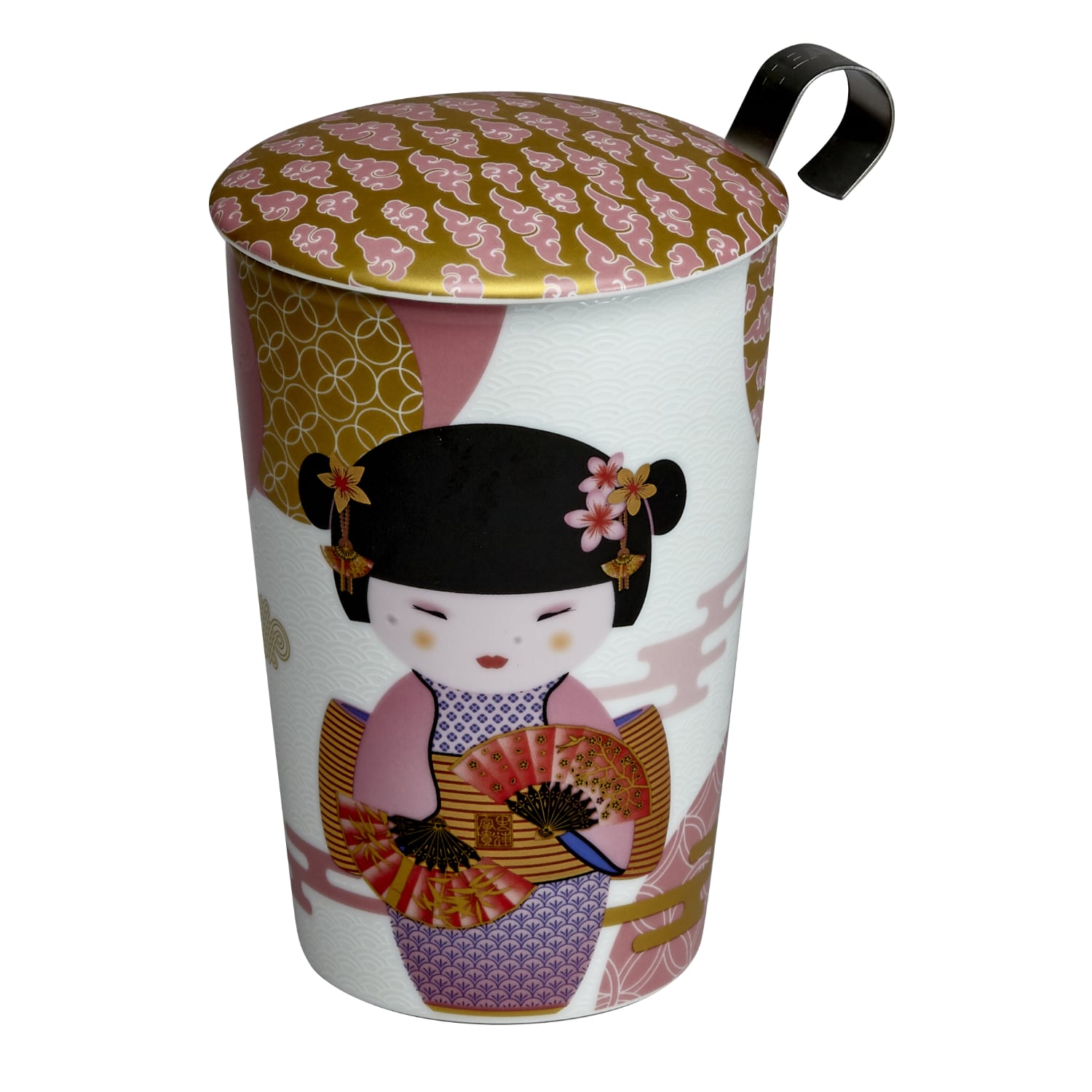 TEAEVE® Komplettset Little Ninja Rose: feines, doppelwandiges Porzellan, Edelstahlsieb und Porzellandeckel.