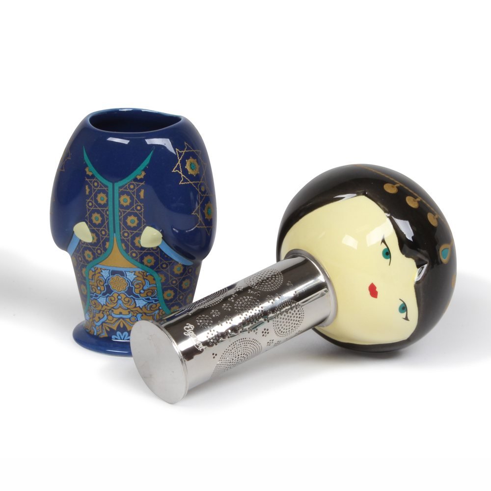 Teilweise handbemalte Keramikfigur mit integriertem Edelstahl Sieb in exklusiver Verpackung - das perfekte Geschenk !