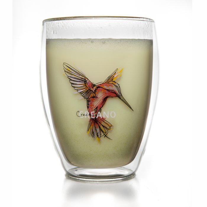 Das Creano ThermoGlas Hummi ist stylish und funktional zu gleich, das mundgeblasene Doppelwandglas mit seinen hervorragenden Isoliereigenschaften macht's möglich! Der faszinierende Kolibri befindet sich auf dem Innenglas, so dass dieser auch nach langem Gebrauch seine Schönheit behält.